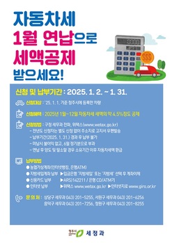 청주시 “자동차세 1월에 연납하고 할인혜택 받으세요”
