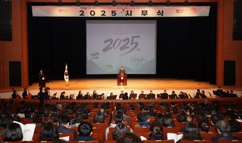충북 청주시는 2일 오전 9시 청주예술의전당 대공연장에서 2025년 시무식을 가졌다.행사에는 이범석 시장, 신병대 부시장을 비롯한 시 직원들과 시 산하기관 직원 및 관계자 등 1200여명이 참석했다. 이범석 시장은 신년사에서 “2024년 국내외 불안정한 정세로