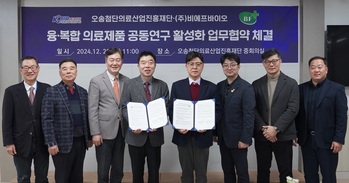 오송첨단의료산업진흥재단(이사장 이명수, 이하‘KBIOHealth’)은 융·복합 의료제품 공동연구 활성화를 위해 ㈜비에프바이오(대표이사 장석홍)와 20일 업무협약을 체결했다고 밝혔다.이번 협약은 몇 차례에 걸친 양 기관의 회의 결과로 추진됐으며, 협력여부 타진과 실무자