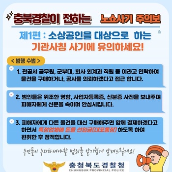 ‘공공기관 사칭’ 노쇼사기 기승… 충북경찰, 도민 경보 발령