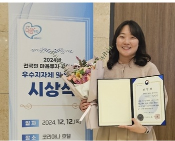 충북 청주시 흥덕보건소 조인선 주무관은 12일 보건복지부가 주최한 ‘2024년 전국민 마음투자 지원사업 포상행사’에서 장관 표창을 받았다.올해 7월 시작된 전국민 마음투자 지원사업은 우울·불안 등 정서적 어려움이 있는 시민에게 전문 심리상담 서비스를 제공, 시민의 마음