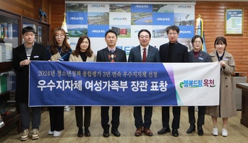 충북 옥천군이 여성가족부 주관 ‘2024년 청소년정책 분석·평가’에서 3년 연속 우수 지자체로 선정되며 여성가족부 장관 표창을 받았다고 밝혔다.여성가족부는 전국 17개 시·도 및 228개 시·군·구를 대상으로 청소년 관련 사업과 정책 등을 평가해 청소년정책 추진에 기여