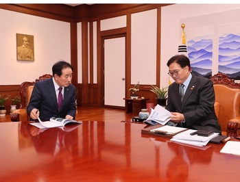 송기섭 진천군수가 2025년도 국가 예산 확보를 위한 건의 활동에 막바지 총력을 기울이고 있다.국회 상임위별 예산 심의가 마무리되고 예결위 심사가 본격화되고 있는 가운데, 송 군수는 26일 간부 공무원들과 함께 국회를 찾아 의원 면담을 가졌다.송 군수는 우원식 국회의장