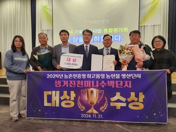 충북 진천군은 생거진천 미니수박 재배단지가 ‘최고품질 농산물 생산단지’서 대상을 수상했다고 25일 밝혔다.진천 미니수박 재배단지는 지난 21일 전남 구례서 열린 농촌진흥청 기술보급 평가회서 국내육성품종 보급과 확산에 이바지한 공로를 인정받았다.충북권 최초, 최대규모의