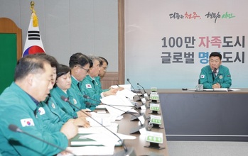 이범석 충북 청주시장은 집중호우 피해와 관련, 21일 전 부서에 “피해 조사를 신속하게 진행하고 일부 복구되지 않은 부분은 조속히 조치하라”고 지시했다.이 시장은 임시청사에서 열린 주간업무보고에서 “예기치 않은 많은 비가 내렸으나 선제적인 주민대피와 도로 통제로 다행히