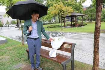 윤인홍 대표, 충북대에 발전기금 5000만원 ‘기탁’…제1호 ‘기부벤치’로 영원히 기억