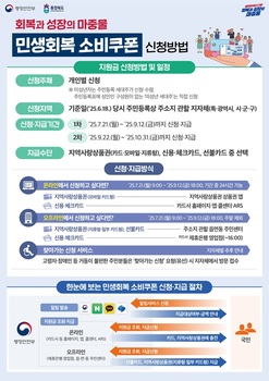 충북도는 정부 정책에 발맞춰 민생경제 회복을 위한 조치로 전 도민에게 ‘민생회복 소비쿠폰’을 21일부터 신속 지급한다고 9일 밝혔다.민생회복 소비쿠폰은 1차와 2차로 나눠 지급되는데 우선 1차 지원은 7월 21일~9월 12일이며 일반도민은 18만원, 차상위계층·한부모가