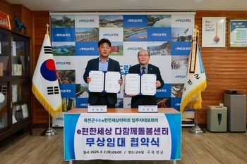충북 옥천군이 초등 돌봄 공백 해소를 위해 다함께돌봄센터 4호점 조성했다.군은 e편한세상 옥천퍼스트원 아파트와 다함께돌봄센터 설치를 위한 무상임대 협약을 2일 체결했다.이날 협약식에는 이헌창 부군수를 비롯해 아파트 입주자대표회의와 관리사무소 관계자 등이 참석했다.협약에
