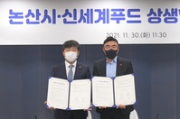충남 논산시는 30일 신세계푸드와 농가의 안정적인 판로 확보를 위한 상상협력 업무협약을 체결했다.이날 협약식에는 황명선 논산시장과 송현석 신세계푸드 대표이사, 임형섭 상무, 농협 조합장 영농법인·농가단체 대표 등이 참석했다.두 기관은 협약에 따라 신세계푸드에 납품하는