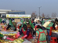 충북 충주시새마을회(회장 정상규)가 19년째 사랑의 김장 김치 나눔을 실천하고 있다.충주새미을회 100여 명의 회원들이 4일 충주종합운동장 앞 광장에서 충주지역 소년소녀가장, 홀몸노인, 장애인과 차상위 가정 등 소외계층 세대에 전달할 사랑의 김치를 만들고 있다.이들이