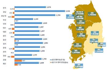 결혼 준비 비용이 여전히 큰 부담으로 작용하는 가운데, 지역 간 결혼서비스 가격 격차가 최대 약 3배에 이르는 것으로 나타났다. 결혼식장과 스드메(스튜디오·드레스·메이크업) 비용을 합산한 6월 기준 결혼서비스 평균비용은 2074만 원으로 집계됐다. 이는 4월(2101만