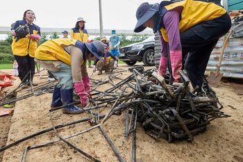 충남 아산시가 집중호우로 인한 수해 복구에 총력을 기울이는 가운데, 전국 각지에서 모인 자원봉사자들이 복구 현장에 큰 힘이 되고 있다.시는 공직자와 군부대, 소방·경찰 등 유관기관, 그리고 다양한 민간단체의 자원봉사자들과 함께 침수 주택 정리, 토사 제거, 방역 소독