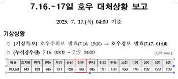 세종시가 16일 밤부터 이어진 집중호우에 대비해 전 행정력을 동원한 대응에 나섰다. 17일 오전 4시 기준, 시 전역에는 호우경보가 발효 중이며, 관계기관들은 비상 대응 체계를 유지한 채 상황을 면밀히 주시하고 있다.기상청에 따르면, 세종지역에는 16일 오후