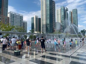 "물놀이형 수경시설로 전환"…도시상징광장, 여름철 물놀이 명소로 운영