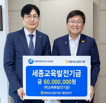 NH농협 세종본부, 세종교육청에 학교체육 발전기금 6천만 원 전달세종시교육청(교육감 최교진)은 8일 NH농협은행 세종본부(본부장 홍순옥)와 함께 ‘학교체육 발전기금 전달식’을 열고, 지역 학생선수 지원을 위한 기금 6000만 원을 전달받았다.이날 전달식은 교육청 청사에
