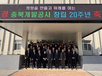 충북개발공사가 20일 공사 대회의실에서 전 임직원들이 참석한 가운데 ‘창립 20주년 기념식’을 개최하고, 지난 20년의 성과를 돌아보며 미래 비전을 공유하는 시간을 가졌다.충북개발공사는 2006년 1월 16일, 자본금 529억원, 임직원 35명으로 출범했다. 이후 20