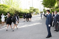 최교진 세종시교육감이 고교 3학년 학생부터 등교개학이 시작된 20일 아침 두루고등학교(교장 박희동)를 찾아 학교 등교개학 현장을 점검했다.이번 점검은 코로나19 여파로 5차례 연기 끝에 고3부터 순차적 등교수업이 이뤄짐에 따라 학교현장의 방역상황과 학사일정 등을 점검하