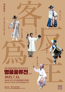 천안시립흥타령풍물단이 오는 12일 천안박물관에서 제17회 정기공연 ‘객반위주(客反爲主) – 명품풍류전’을 개최한다고 1일 밝혔다.이번 공연은 천안박물관 재개관을 기념해 마련된 것으로, 천안시립예술단의 ‘삼거리토요상설무대’ 개막작으로도 진행된다. 명인을 통해 전