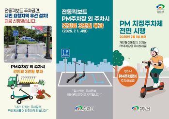 천안시는 이달부터 개인형 이동장치(PM) 지정주차제를 본격 시행한다고 1일 밝혔다.이번 조치는 지난 1월 발표한 ‘개인형 이동장치(PM) 안전 종합대책’의 후속 대책으로, 도심 내 무분별한 주차와 방치 문제를 해결하고 보행자의 안전을 확보하기 위해 도입됐다.천안시는 올