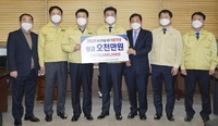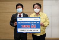 조두식 NH농협은행 충남영업본부장은 3일 천안시청을 방문, 구만섭 시장권한대행에게 코로나19 극복을 위한 특별기부금 5000만원을 전달했다.NH농협은행 충남영업본부의 특별기부금은 천안시복지재단에 전달돼 천안시 관내 코로나19 확산 방지와 취약계층 감염예방을 위한 마스크