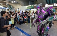 백제문화제 홍보에 나선 글로벌 엔터테이너 로봇 ‘타이탄 더 로봇’이 관심을 한 몸에 받았다.(재)백제문화제추진위원회는 8일 아산시 배방읍 소재 천안아산역에서 타이탄을 등장시켜 제65회 백제문화제를 홍보했다.2.4m 높이의 타이탄 더 로봇은 천안아산역사를 찾은