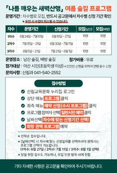 아산시가 여름철 시민 건강 증진을 위해 ‘나를 깨우는 새벽 산행(여름 숲길)’ 프로그램을 운영한다. 이번 프로그램은 시민들이 활기찬 하루를 시작하고 건강한 아침 습관을 형성할 수 있도록 돕기 위해 마련됐다.산행은 오는 24일부터 8월 21일까지 총 3개 차수로