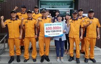 충북 제천소방서 119구조대(대장 이영재)는 6일 제천지역자활센터를 방문해 성금 40만원을 전달했다.이날 전달된 성금은 지난달 22일 충북도 인명구조경연대회서 ‘최우수상’을 차지하면서 받은 상금 전액이다.대원들은 받은 상금을 청소년과 저소득층을 위해 쓰자는 뜻을 모아
