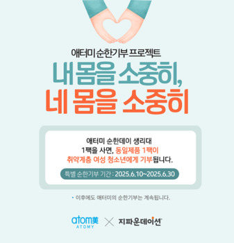 "소비가 곧 기부로"… 애터미, '생리대 1+1 기부' 캠페인 전개