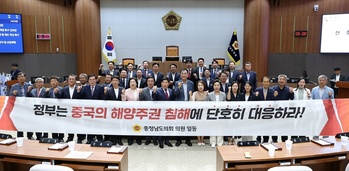 충남도의회가 중국의 서해 불법 구조물 설치에 강력히 대응할 것을 정부에 촉구하고 나섰다. 도의회는 10일 제359회 정례회 제1차 본회의에서 방한일 의원(예산1)이 대표 발의한 ‘중국의 서해 불법 구조물 설치, 철거 촉구 건의안’을 채택했다.방 의원은 “서해는