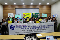 충북여성연대 등은 26일 배우 조민기씨 성추행 논란과 관련, “청주대학교는 사건을 철저히 조사해 학생과 학부모, 지역사회에 공개하고 피해자 전수조사를 실시하라”고 촉구했다. 충북여성연대는 이날 충북도 브리핑룸에서 기자회견을 열고 “피해자들을 응원하고 성폭력 근절을 위한