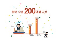 충북 수출이 지난해 12월 사상 최초로 200억달러를 달성하며 전국 경제 4%를 견인하고 있는 것으로 나타났다.16일 도에 따르면 2010년 12월 22일 100억달러를 달성한 이후 7년만에 이뤄진 쾌거다. 또한 수출증가율도 전년대비 25.0% 증가해 전국평균 15.8