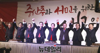 자유한국당 충북도당이 홍준표 대표가 참석한 가운데 신년인사회를 열고 오는 6·13전국동시지방선거 승리를 다짐했다.11일 청주 S플라자에서 당원 등 500여명이 참석한 가운데 열린 신년인사회에서 홍 대표는 “충북은 한국 민심의 가늠자”라며 “오는 6·13선거에서 충북이