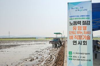 아산시, 벼 직파 연시회 진행…신기술 선보여