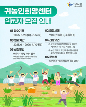 부여군, 귀농인희망센터 입교자 7세대 모집