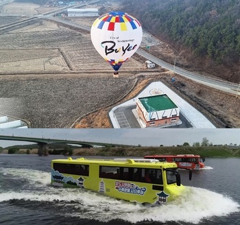 하늘과 강을 누비며 백제의 숨결을 느끼는 유일한 체험 부여에서만 가능한 수륙양용 버스와 열기구 자유비행이 관광객의 이목을 끌고 있다.19일 부여군에 따르면 백제 고도 부여군이 역사 문화와 함께 전국 유일 수륙양용 버스와 열기구 자유비행을 모두 즐길 수 있는 이색 체험