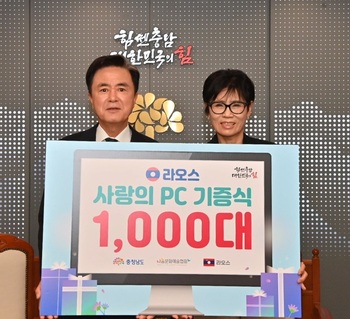 충남도가 라오스 정부와의 우호 협력을 강화하고 디지털 전환을 지원하기 위해 컴퓨터 1000대를 기증했다. 도는 1일 도청 접견실에서 김태흠 지사와 유현숙 라오스 명예대사 겸 나눔문화예술협회 이사장이 참석한 가운데 ‘라오스 사랑의 컴퓨터(PC) 기증식’을 열었다.이번 기