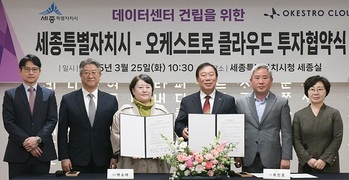 세종시는 25일 오케스트로클라우드와 데이터센터 건립을 위한 투자협약을 체결했다고 밝혔다. 오케스트로클라우드는 서버 가상화 소프트웨어와 데이터센터 운영 전문기업으로, 이번 협약에 따라 어진동 세종파이낸스센터Ⅱ에 전체면적 3만㎡ 규모의 데이터센터를 건립한다.&nb