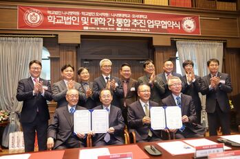 호서대와 나사렛대가 충청 지역의 거점 사립대학으로 도약하기 위한 통합을 추진한다.양 대학은 호서대학교 성재도서관 메모리얼홀에서 양 대학의 학교법인 이사장과 총장 4인이 참석해 두 대학의 통합을 위한 업무협약을 체결했다고 25일 밝혔다. 양 대학의 통합이 성사되