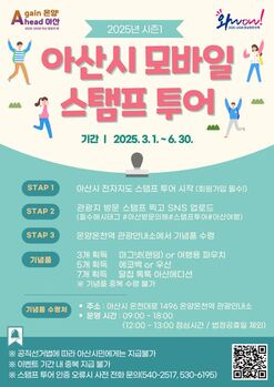 아산시가 ‘2025-2026 아산 방문의 해’를 맞아 관광객 유치와 주요 관광지 방문 독려를 위해 ‘2025 아산시 모바일 스탬프 투어’를 운영한다.20일 아산시에 따르면 ‘스탬프 투어’는 스마트 관광 전자지도를 활용해 아산의 주요 관광지를 방문하고 스탬프를 획득하면,