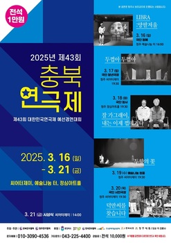 제43회 충북연극제가 오는 16일부터 20일까지 청주 민간소극장에서 열린다. 이번 연극제는 연극의 대중화를 위해 전석 1만 원 유료공연으로 진행되며, 5개 극단이 참가해 경연을 펼친다. 대상 수상팀은 오는 7월 인천에서 열리는 제43회 대한민국연극제