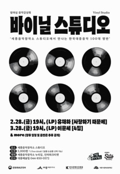 세종시문화관광재단은 야간 음악 감상 프로그램 '밤마실 음감회-바이닐 스튜디오'를 오는 28일부터 매월 넷째 주 금요일 오후 7시 세종음악창작소에서 운영한다고 18일 밝혔다.이는 세종시 대중교통의 날에 맞춰 진행된다.'바이닐 스튜디오'는 LP와 CD를 통해 감성적인 음악