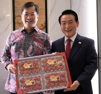 백성현 충남 논산시장이 '2025 논산 농식품 해외 박람회' 개막을 앞두고 인도네시아 자카르타에서 논산농산물의 경쟁력 강화와 수출 확대를 위한 협력에 나섰다.백 시장은 13일 인도네시아 대형 외식·유통기업인 보가그룹(BOGA Group) 및 한국 외식 브랜드 이비가(E