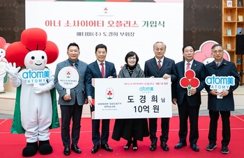 도경희 애터미 부회장이 사랑의열매 '세종희망 2025 나눔캠페인'에 10억 원을 기부하며 세종 1호 오플러스 회원에 이름을 올렸다. 이는 세종지회 설립 이래 개인 최고액 기부 기록이다.15일 세종시청에서 열린 가입식에는 도 부회장과 박한길 애터미 회장을 비롯해