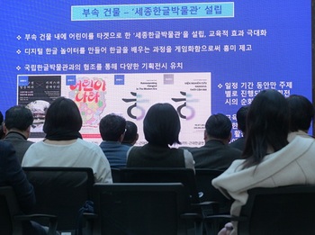 세종시가 추진 중인 (가칭) 한글문화글로벌센터는 한글 콘텐츠산업 육성과 연구개발에 중점을 둬야 한다는 제언이 나왔다.세종시는 최근 시청 책문화센터에서 '한글문화도시 정책 이야기마당'을 열고 센터의 조성 방향을 논의했다고 24일 밝혔다. 최민호 시장은 "한글문화