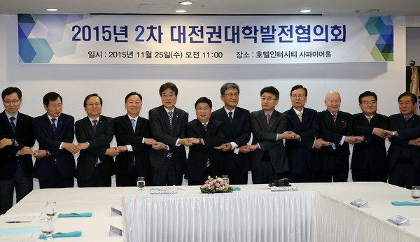 대전권대학발전협의회(공동의장 대전시장 권선택)는 25일 오전 호텔인터시티에서 2015년도 제2차 하반기 회의를 열고 지역현안에 대하여 공조하기로 협의했다.
