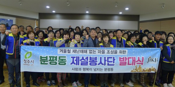 청주시 분평동 주민센터가 25일 겨울철 눈길 안전사고 없는 살기좋은 분평동을 만들기 위해 제설봉사단 발대식을 가졌다.