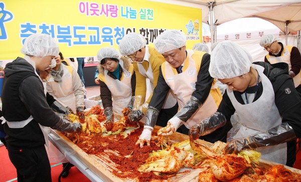 충청북도교육청은 25일 롯데아울렛 청주점에서 이웃사랑 실천 김치 나눔 봉사활동을 가졌다.