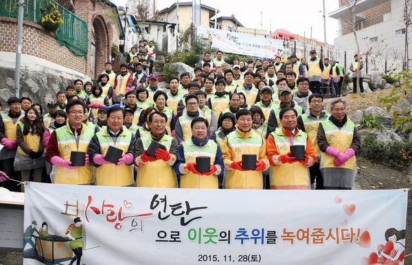이날 참석자들은 대동종합사회복지관 앞에서 ‘사랑의 연탄나누기로 이웃의 추위를 녹여줍시다’라는 퍼포먼스를 펼치고 저소득층 15세대에 4500장의 연탄을 전달했다.