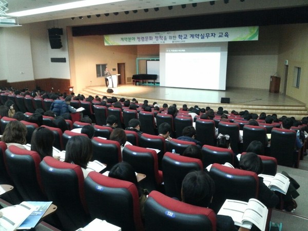 양개석 재무과장은 “계약업무는 다른 업무보다 전문성과 공공성이 요구되는 업무이기 때문에 이번 교육이 일선 학교 계약실무자들의 전문성 함양에 많은 도움이 될 것으로 기대되며 계약업무의 공정하고 투명한 집행에 대한 인식을 높여 청렴 계약문화가 정착될 수 있는 기회가 되길 바란다”고 전했다.