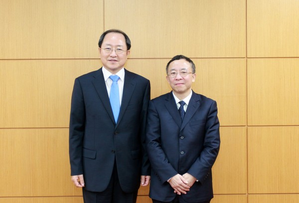 대전시 류순현 행정부시장(사진 왼쪽)이 1일 오전 11시 시청 10층 접견실에서 중국 절강성 구주시 인민정부 부근우 부시장(사진 오른쪽) 일행을 접견하고 대전시와 구주시간 교류 활성화에 대해 논의했다.